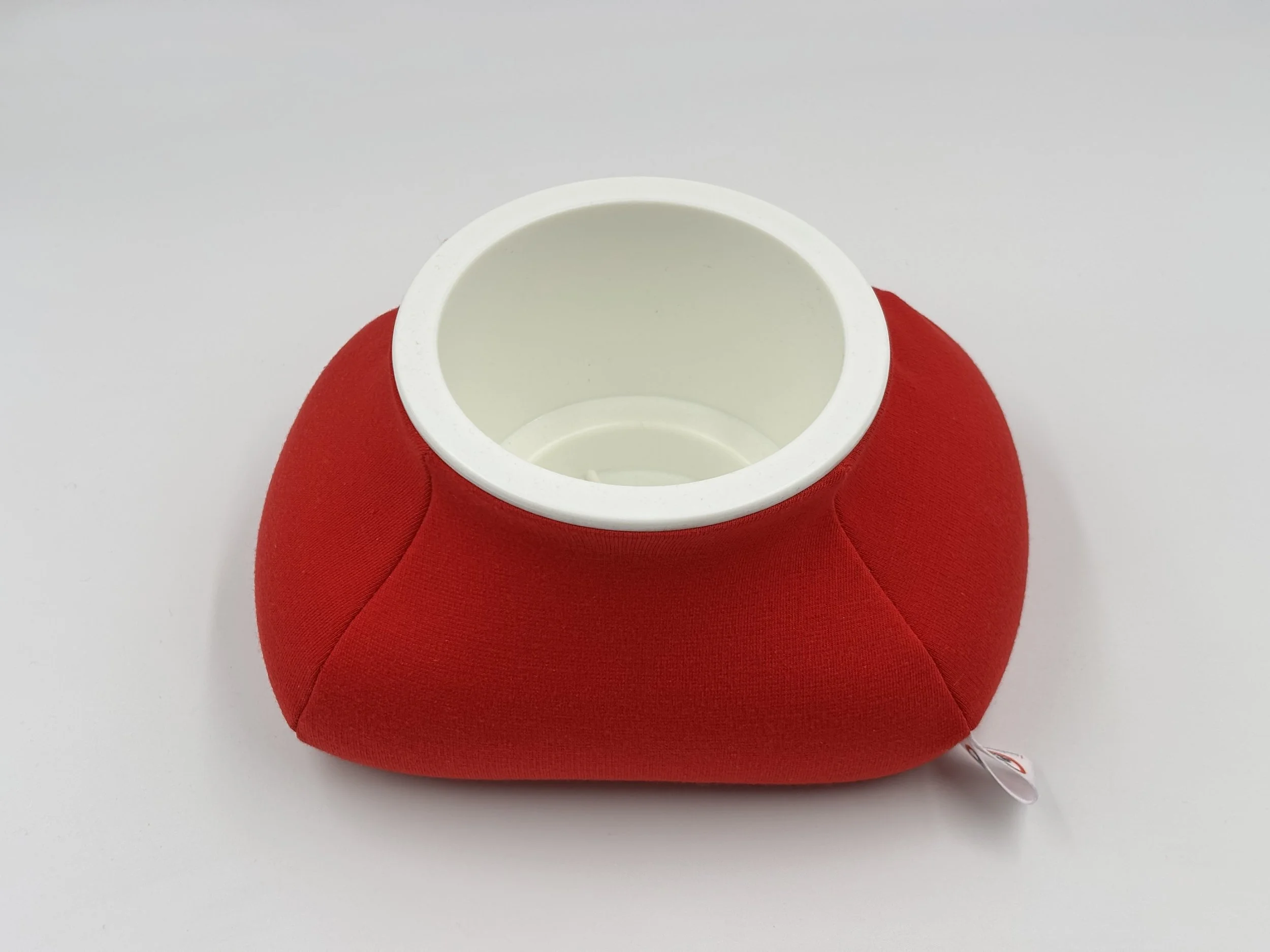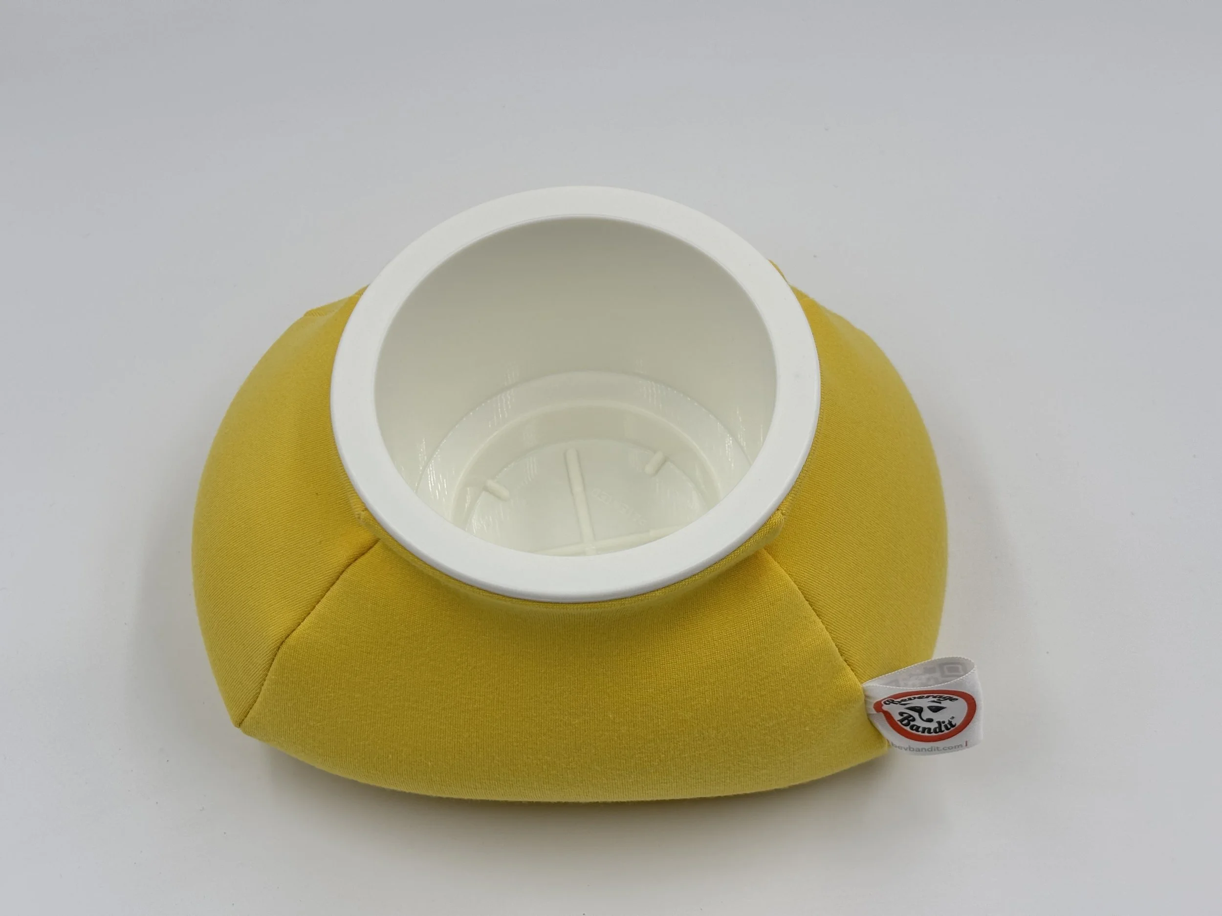 This is the single cup Beverage Bandit. It has a nice weighted base that is soft and flexible. The solo Bandit is great for your car, bed, couch, or boat. You can even take it camping with you!